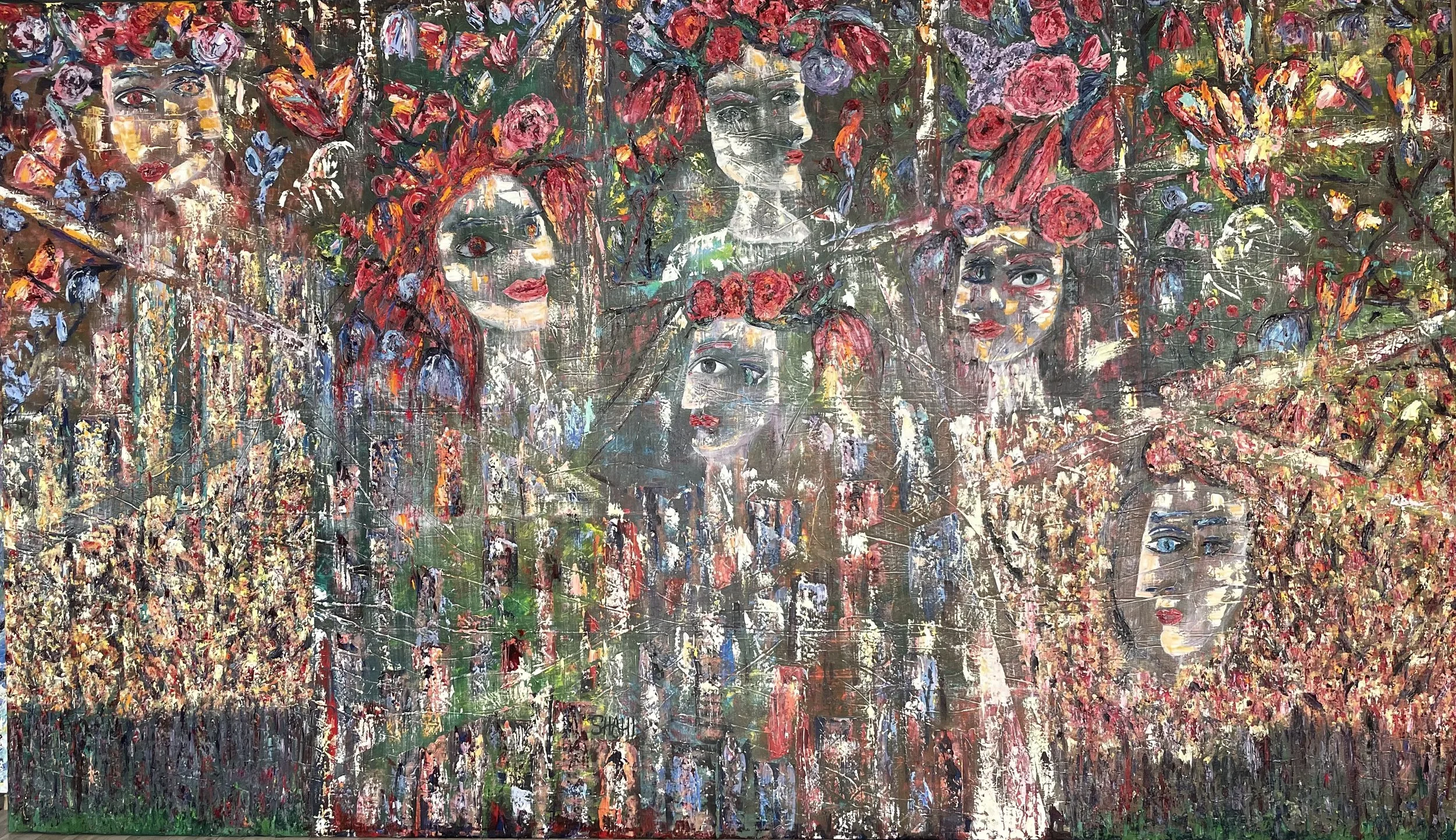 "House of Illusions" showcases the artist’s unique exploration of using thick lines to partition the canvas into distinct sections. These lines serve as windows that offer glimpses into various parts of the same house. The artworks in this series are more substantial and more abstract than her previous works, incorporating both light and dark elements simultaneously. The pieces are multifaceted, sometimes whimsical and other times daring, evoking a sense of constant transformation within the viewer's emotions as they focus on different aspects of the artwork.