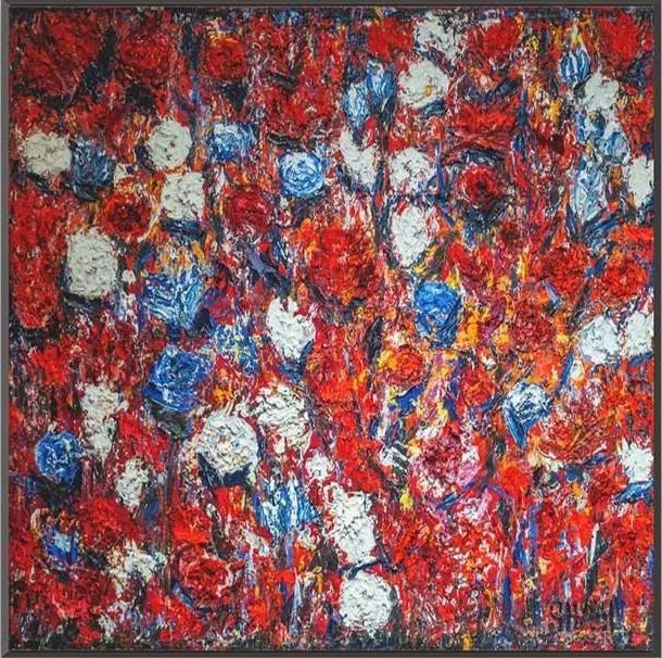 Camellia 4 Captivates us with its surplus of color and its beautiful composition. It represents attributes such as devotion and kindness through its expression of colors such as red and orange to paint the canvas to illustrate flowers that represent the natural beauty of our world. This allows us to appreciate our habitat further as we see it beautifully portrayed in an inventive sense.
