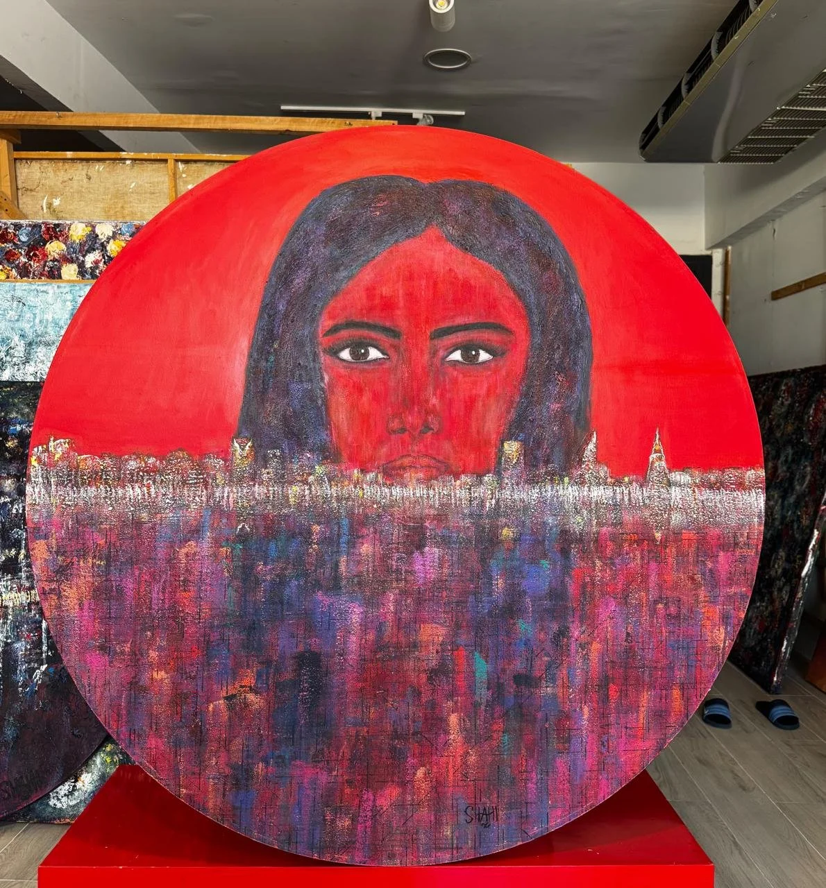 Bathed in soft hues of red and rose, this piece emanates quiet peace and emotional depth. The mirrored landscape below symbolizes harmony between the grounded and the ethereal , tenderness as strength.